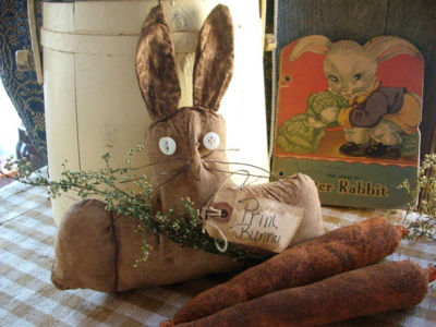 Title (ebay affiliate link): PriMiTiVe SpRiNg EAsTeR BuNNY WiTh CaRrOt ShelF siTTeR