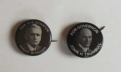 Title (ebay affiliate link): HIRAM BINGHAM JOHN H. TRUMBULL CT. GOVERNOR PINBACK BUTTONS 1924-26