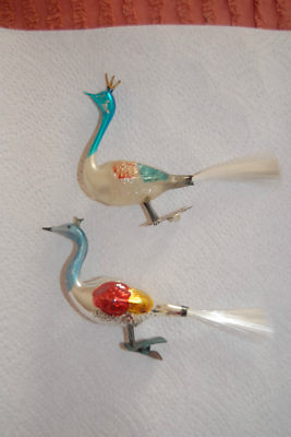 Title (ebay affiliate link): Vintage Mercury Glass Clip on Birds. Peacock. Spun Glass Tail. Excellent.