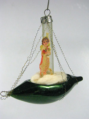 Title (ebay affiliate link): Vintage Antique Krinkle Wires BOAT w Paper ANGEL Christmas Ornament Germany