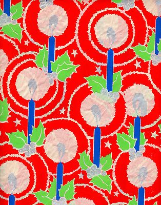 Title (ebay affiliate link): RARE Art Deco XMAS WRAP Candles HALOS Holly AMERICAN TISSUE Holyoke MA 20x30''