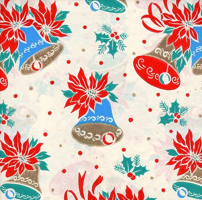 Title (ebay affiliate link): RARE Art Deco XMAS WRAP Poinsettias & Bells AMERICAN TISSUE Holyoke MA 20x30''