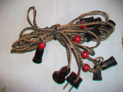 Vintage Bakelite Socket Light Set Cloth Cord Copper Lined & Red Wooden Beads