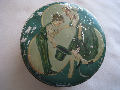 Tindeco St. Patrick Irish Green 3 Leaf Clover Little Boy & Little Girl Tin