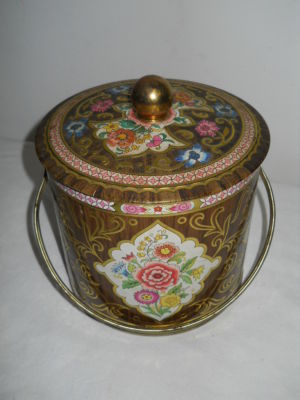 Title (ebay affiliate link): VINTAGE METAL DAHER DECORATIVE BISCUIT TIN MADE IN ENGLAND