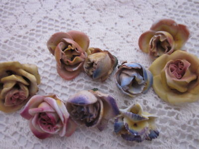 SET OF 9 VINTAGE PORCELAIN ROSES AND FLOWERS PINKS BLUES YELLOWS