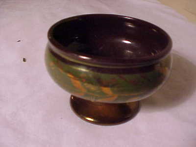 Gorgeous Green & Gold Copper Lustre Salt Holder