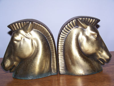 Title (ebay affiliate link): Vintage Art Deco Trojan Horse Horsehead Bookends Hollow Pretty Cool