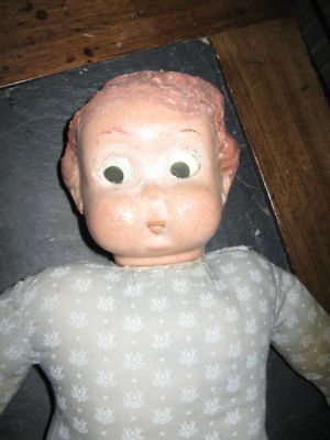 Title (ebay affiliate link): Antique Vtg Handmade Composition Paper Mache Head Lg Cloth Body Doll Googly Eyes