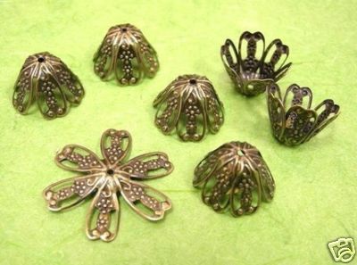 12pc antique bronze filigree flower bead caps-1656