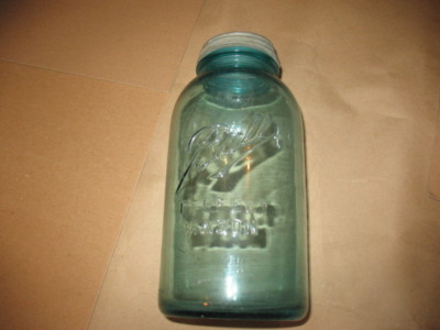 Lg. Blue Ball Perfect Mason Jar w/Zinc Lid, Nice