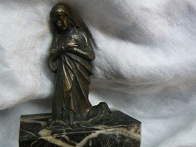 Wonderful Antique Bronze on Marble of Woman Knelling