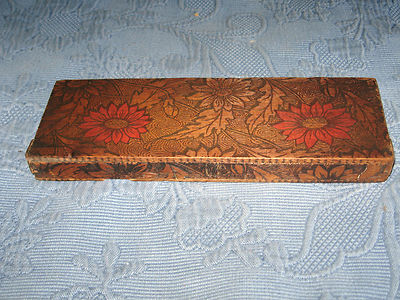 Vintage Pyro Floral & Leaf Decorated Wooden Lidded Glove or Dresser Trinket Box