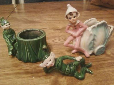 Title (ebay affiliate link): 3 VINTAGE PORCELAIN ELVES FIGURINE AND PLANTER/VASE"S TREASURE CRAFT/JAPAN