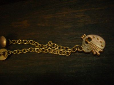 Title (ebay affiliate link): Rare Vtg Artist Palette Paint Brush Vest Jacket Button Chain Gold Charm Unisex