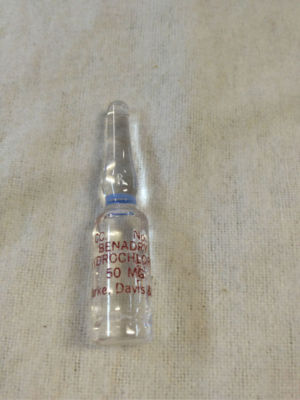 Title (ebay affiliate link): Vintage Glass Ampoule - Benadryl Hydrochloride 50MG - Parke, Davis & Co.