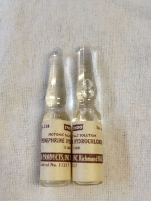 Title (ebay affiliate link): (2) Vintage Ampoules - Endo Isotonic Salt Solution - Epinephrine Hydrochloride