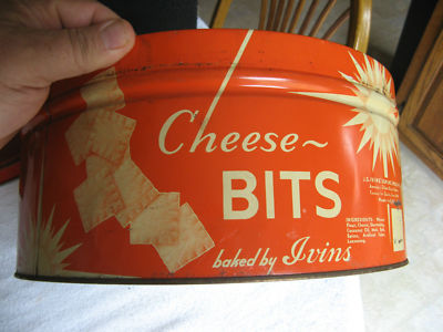 VINTAGE IVINS CHEESE BIT CRACKER TIN - BIG!!