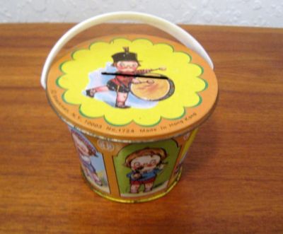 Title (ebay affiliate link): Vintag Shackman NY Campbells Soup Kids Metal Tin Pail Bucket Bank Plastic Handle