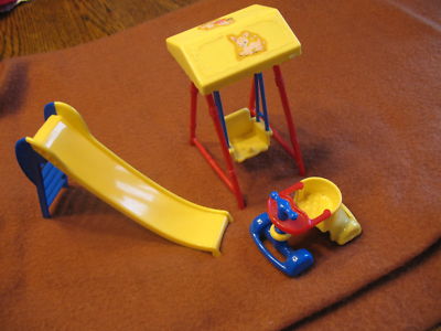 Title (ebay affiliate link): Vintage, old Renwal Scooter,walker, Playground slide, Swing. 3 antique doll