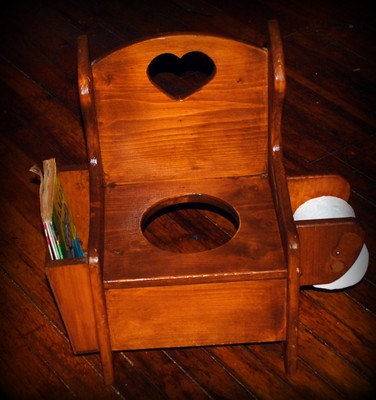 Title (ebay affiliate link): Wooden potty chair w book rack and toilet paper holder