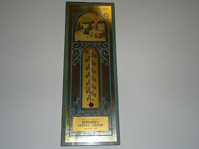Vintage glass thermometer newcomer's service station taneytown Md with church