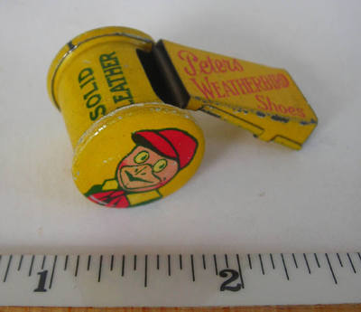 Title (ebay affiliate link): Vintage Saint Louis Peters Weatherbird Shoes Advertising TIN Litho WHISTLE Pea