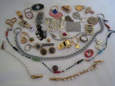 Title (ebay affiliate link): Vintage Jewelry Lot-Sweater Clips,Keychains,Buttons,Clips,BucklesMisc.