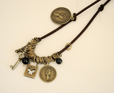 Title (ebay affiliate link): fashion vintage style coin key tower theme long chain necklace