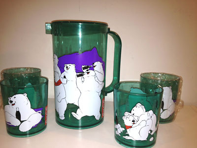 Title (ebay affiliate link): Coca Cola Green Hard Plastic Polar Bear Pitcher & 4-14 oz. matching tumblers