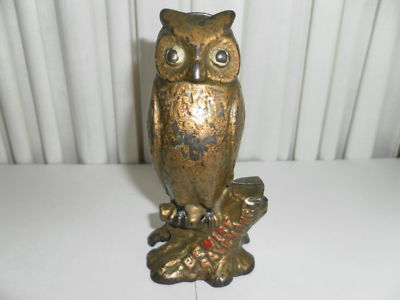 Title (ebay affiliate link): ANTIQUE CAST IRON BE WISE SAVE MONEY OWL BANK MADE BY A.C WILLIAMS 1912 ORIGINAL
