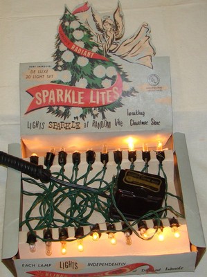 Title (ebay affiliate link): VINTAGE SPARKLE LITES 20 LIGHT TRANSFORMERFLASHING LIGHT SET IN ORIGINAL BOX