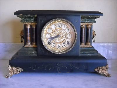 Title (ebay affiliate link): Works! Antique SESSIONS black Mantel clock, orig label