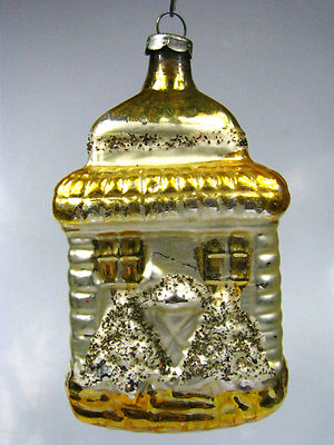 Title (ebay affiliate link): Vintage Glitter HOUSE Blown Mercury Glass Christmas Ornament Germany