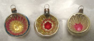 3 Antique Miniature INDENT German Glass Christmas Ornaments for Feather Tree