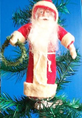 Title (ebay affiliate link): GERMAN STYLE CLAY FACE FELT SANTA CLIP ON CHRISTMAS ORNAMENTS BY VONI