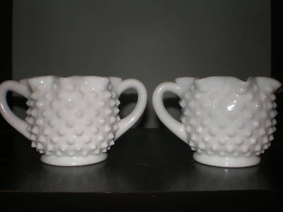 FENTON HOBNAIL MILK GLASS STAR SUGAR AND CREAMER SET