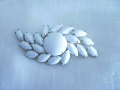 VINTAGE WHITE MILK GLASS BROOCH JULIANA large