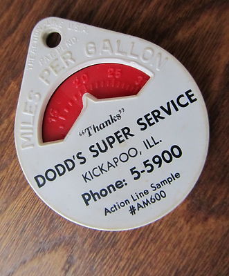 KICKAPOO IL - Vintage Miles Per Gallon Key Fob Keychain Near BRIMFIELD