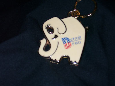 VINTAGE DETROIT 1980 ELEPHANT SHAPE PATRIOTIC KEY CHAIN * LOOK
