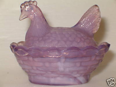 PURPLE MILK GLASS HEN CHICKEN ON NEST DISH ROOSTER SLAG