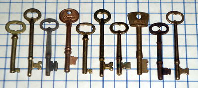 Title (ebay affiliate link): Antique Vintage old solid brass furniture barrel skeleton key lot cabinet lock