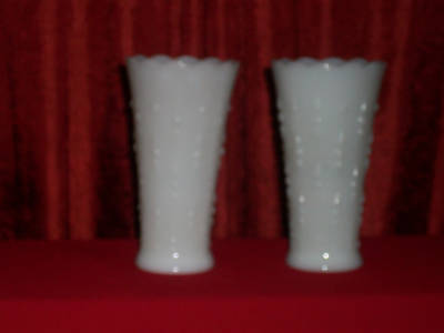 White Milk Glass 7" Vase w/dot and drop Design Set of 2