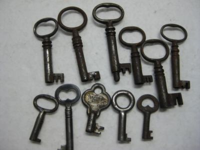 11 ANTIQUE HOLLOW BARREL FURNITURE CABINET KEYS