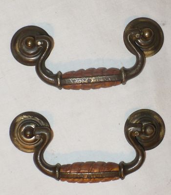 Title (ebay affiliate link): lot set 2 antique vintage furniture drawer pull handle hardware wood and brass