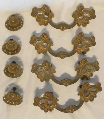Lot Set 8 antique vintage french drawer pulls handles knobs Large Ornate