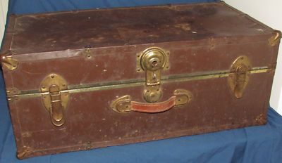 Title (ebay affiliate link): Antique Vtg Metal Train Travel Trunk Suitcase Luggage W/SHELF Coffee Table Brown