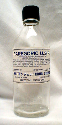 Title (ebay affiliate link): PAREGORIC U.S.P. BOTTLE MORPHINE SULPH REXALL SANI BROCKWAY SIKESTON MISSOURI