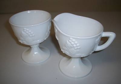 Vintage Paneled Grape Milk Glass Creamer & Sugar Bowl