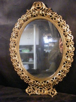 ANTIQUE 18" ROCOCO GILT IRON OVAL WALL MIRROR - STERNBERGER CO.